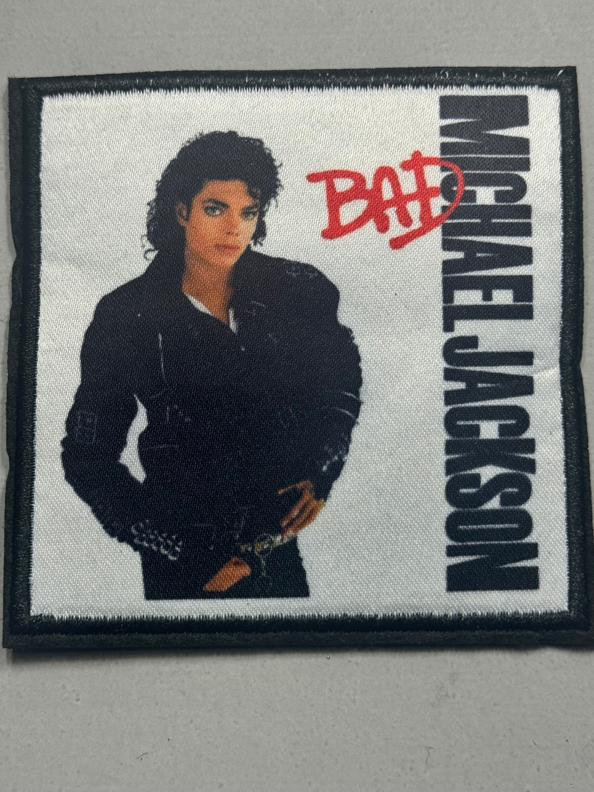 A bold fabric patch featuring an ’80s music legend in a black leather outfit with the word “BAD” stylized across the design. Perfect for jackets, vests, and music lovers.