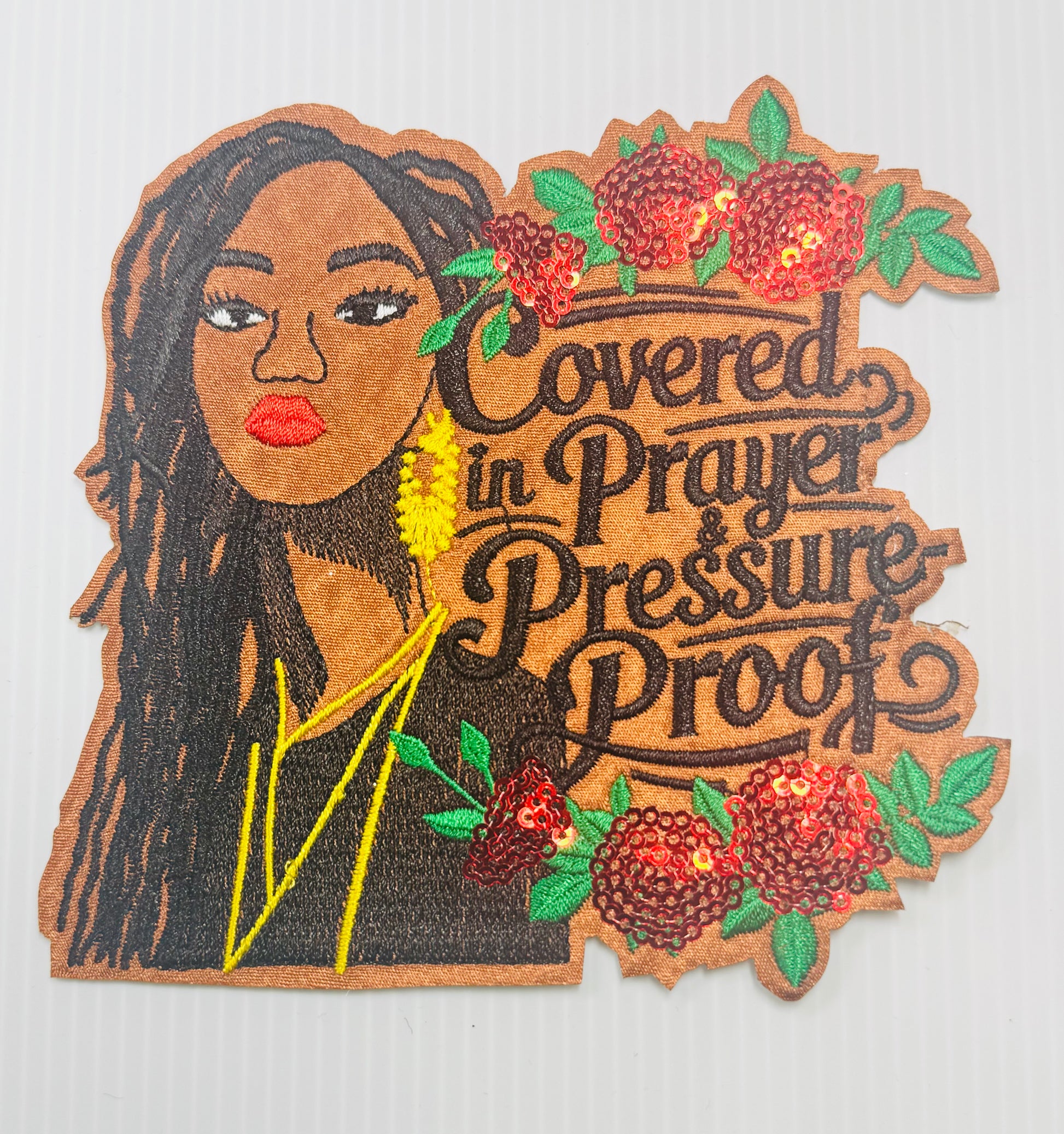 Spiritual patches designed to inspire faith and devotion in your daily life. Each "Covered in Prayer" patch features meaningful religious imagery and messaging, perfect for personalizing jackets, bags, or apparel. Crafted with quality embroidery and durable backing, these patches serve as wearable reminders of your spiritual journey. Ideal for believers seeking subtle yet powerful ways to express their faith through fashion and accessories.