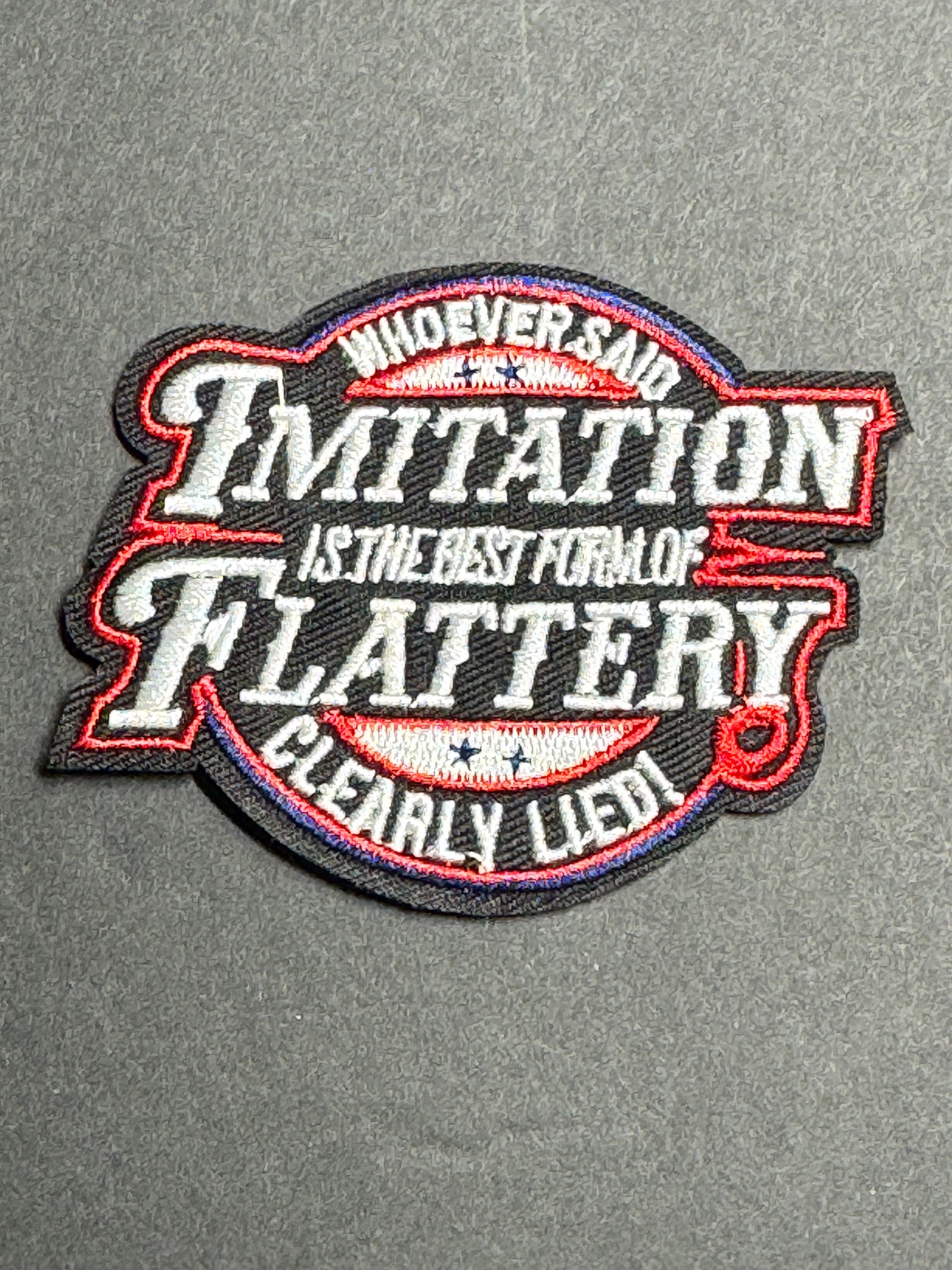 A bold, humorous patch with layered red, white, and blue embroidery — perfect for jackets, totes, and statement pieces.