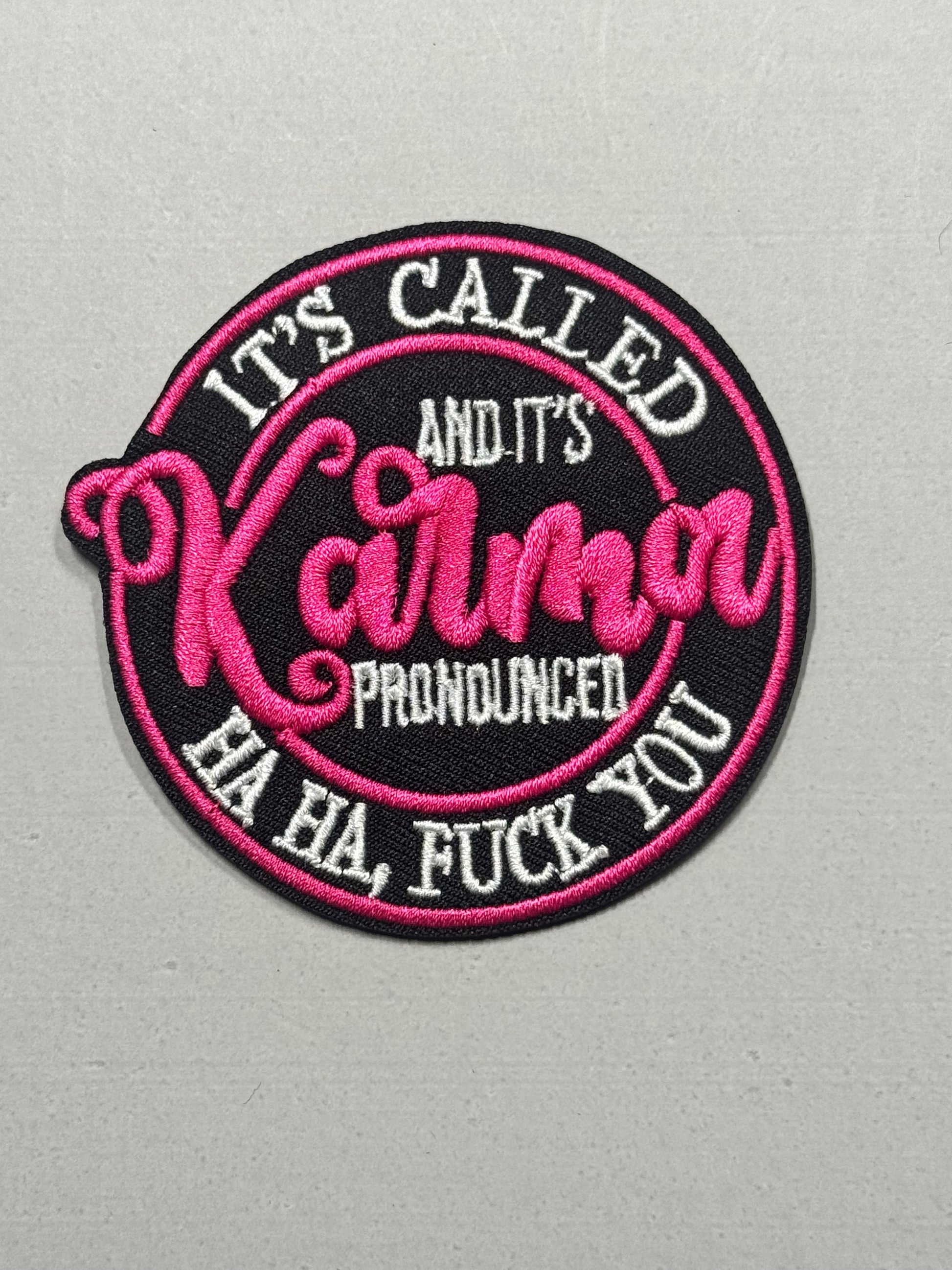 KARMA patches in pink, black, and white deliver versatile style for customizing jackets, bags, and apparel. These durable fabric patches feature bold color blocking that complements any aesthetic, from streetwear to vintage-inspired looks. Easy to apply and built to last, they're perfect for personalizing your gear with attitude and flair.