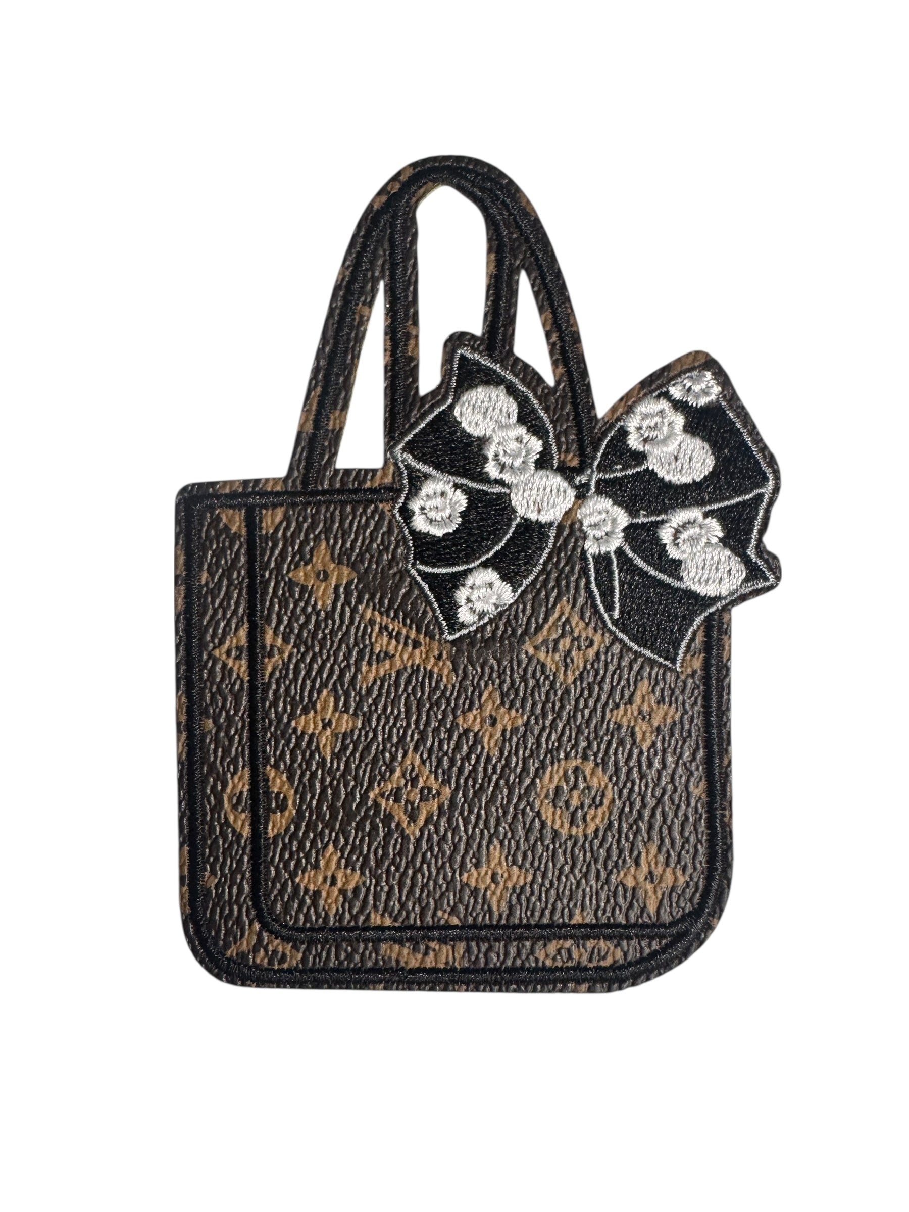 LV-INSPIRED BROWN FAUX LEATHER HANDBAG W/BOW