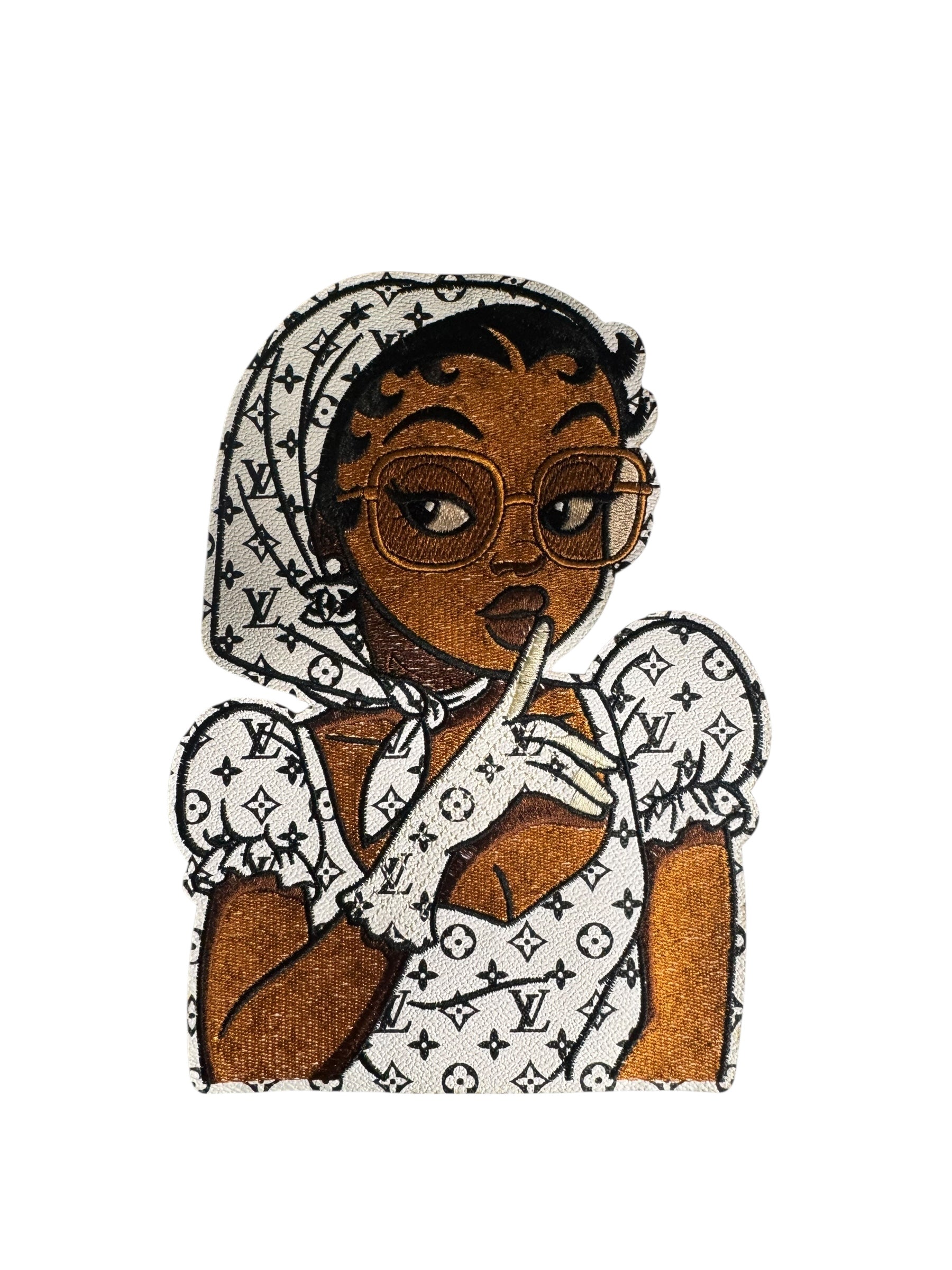 LV-INSPIRED WHITE LITTLE MISS KEEP QUIET BETTY JACKEY/SHIRT PATCH