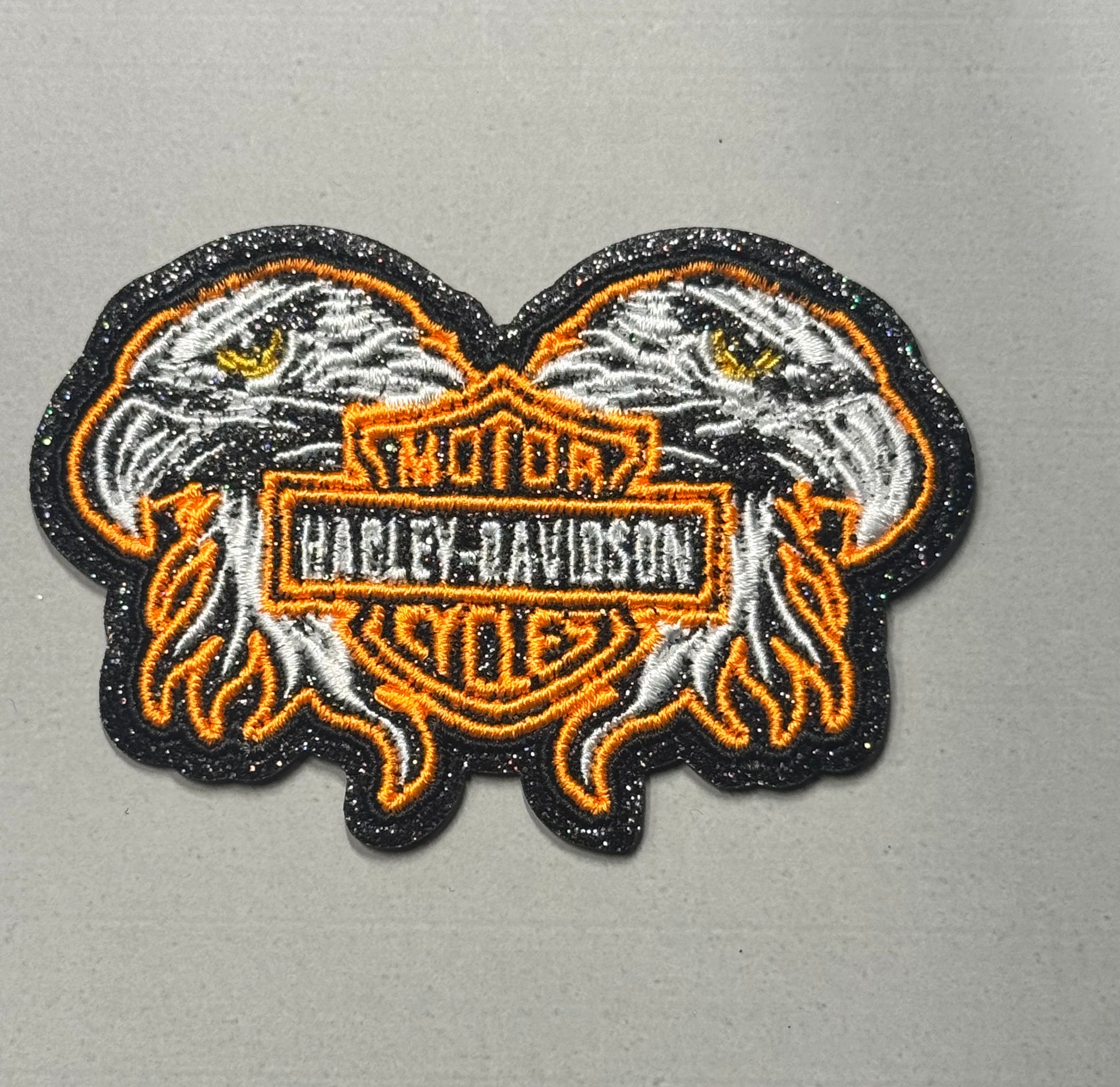 A bold twin-eagle patch with fiery orange accents and a motorcycle-style emblem. Strong, rugged, and perfect for jackets, vests, and gear bags.